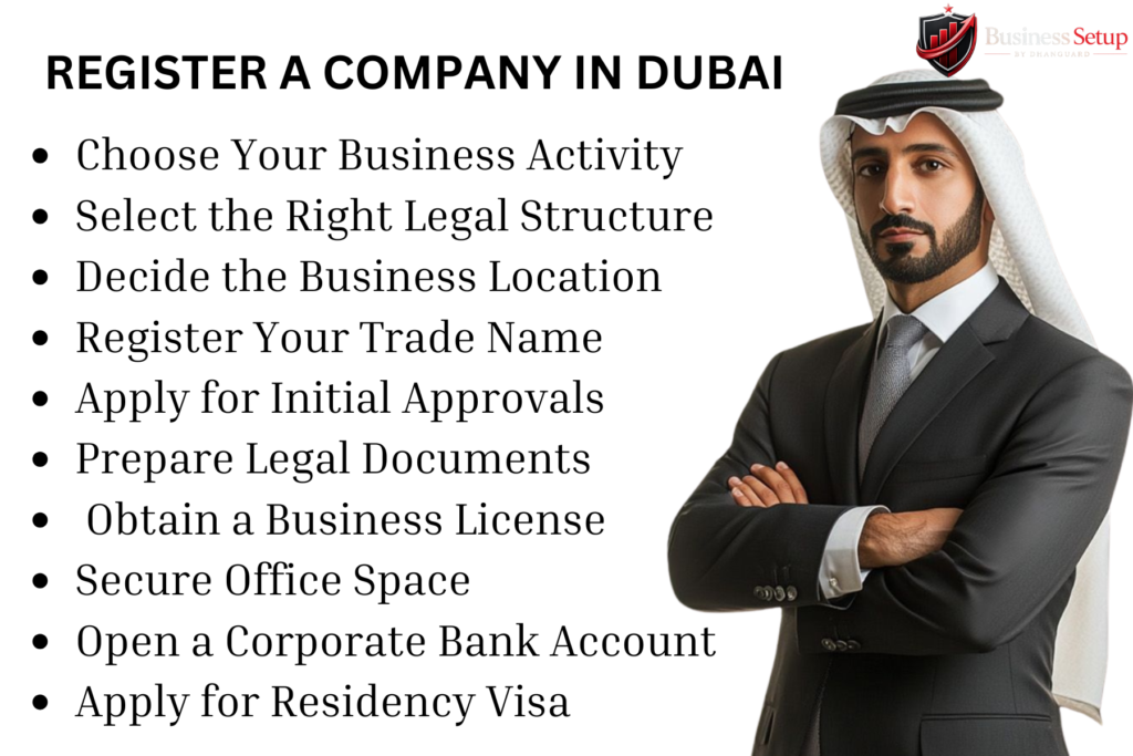 The first step in registering a company in Dubai is deciding what type of business you want to start. Your business activity determines the type of license you need and the approvals required. Dubai offers a wide range of activities, so it is important to choose one that aligns with your skills, experience, and market demand.